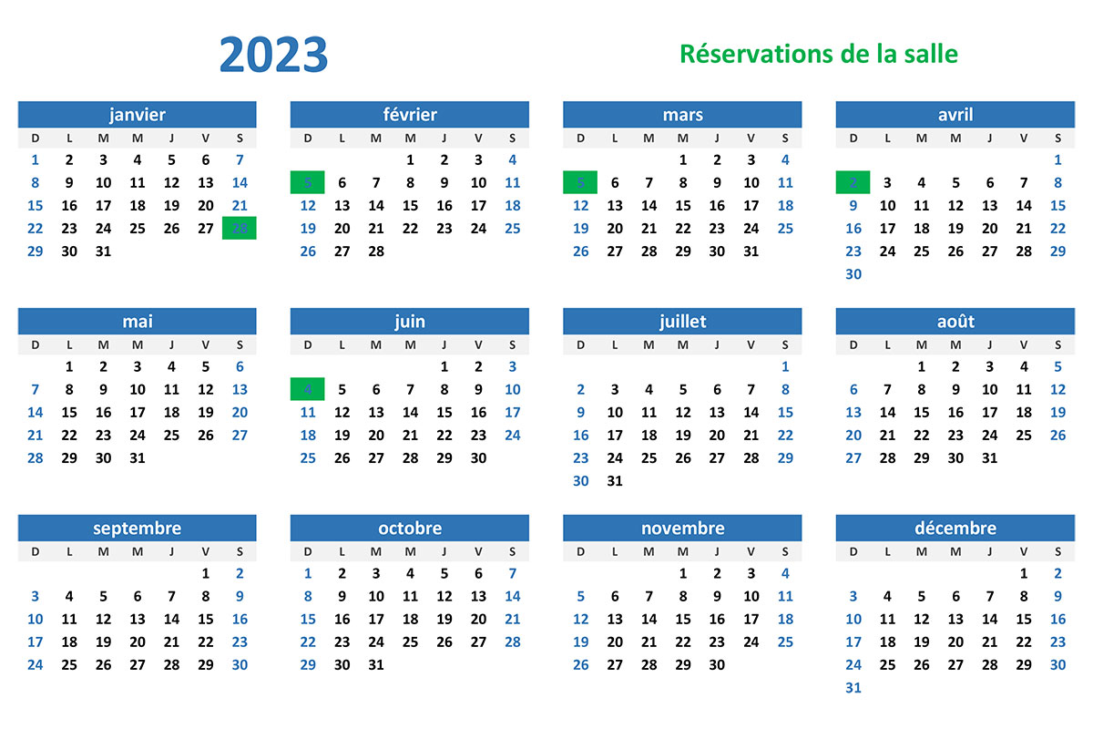 Télécharger l'agenda de la disponibilité de la salle (Format PDF)